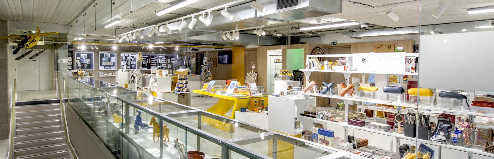 Librement accessible, la boutique vous accueille dans un vaste espace, prolongement naturel du musée, dans lequel sont proposés de nombreux articles liés à l’histoire postale et aux expositions en cours. Située au premier étage, vous y trouverez de quoi repartir avec un souvenir ou dénicher un cadeau original à offrir.