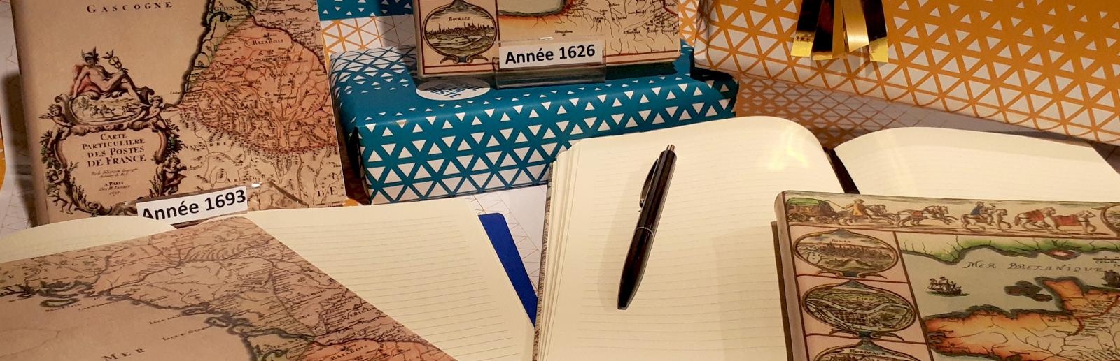 Deux nouveaux carnets lignés avec, sur leurs couvertures, des cartes historiques qui témoignent de l’ampleur du réseau postal français, et cela dès la fin du XVIIe siècle. Deux beaux objets disponibles à la boutique du Musée, que l’on peut également commander, pour offrir ou pour s’offrir.