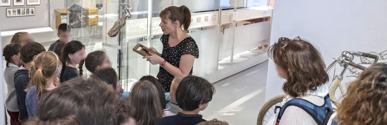 Accompagnés d'un médiateur culturel, les élèves suivent le parcours de la lettre, des débuts de l’écriture au développement de la correspondance, et repèrent les différents outils utilisés à travers les âges pour rédiger un message. Ils découvrent ensuite la collection d’art postal ou comment la Poste a inspiré les artistes, et le Mail Art : une pratique artistique originale qui lie écriture et création en détournant les codes classiques de la lettre.