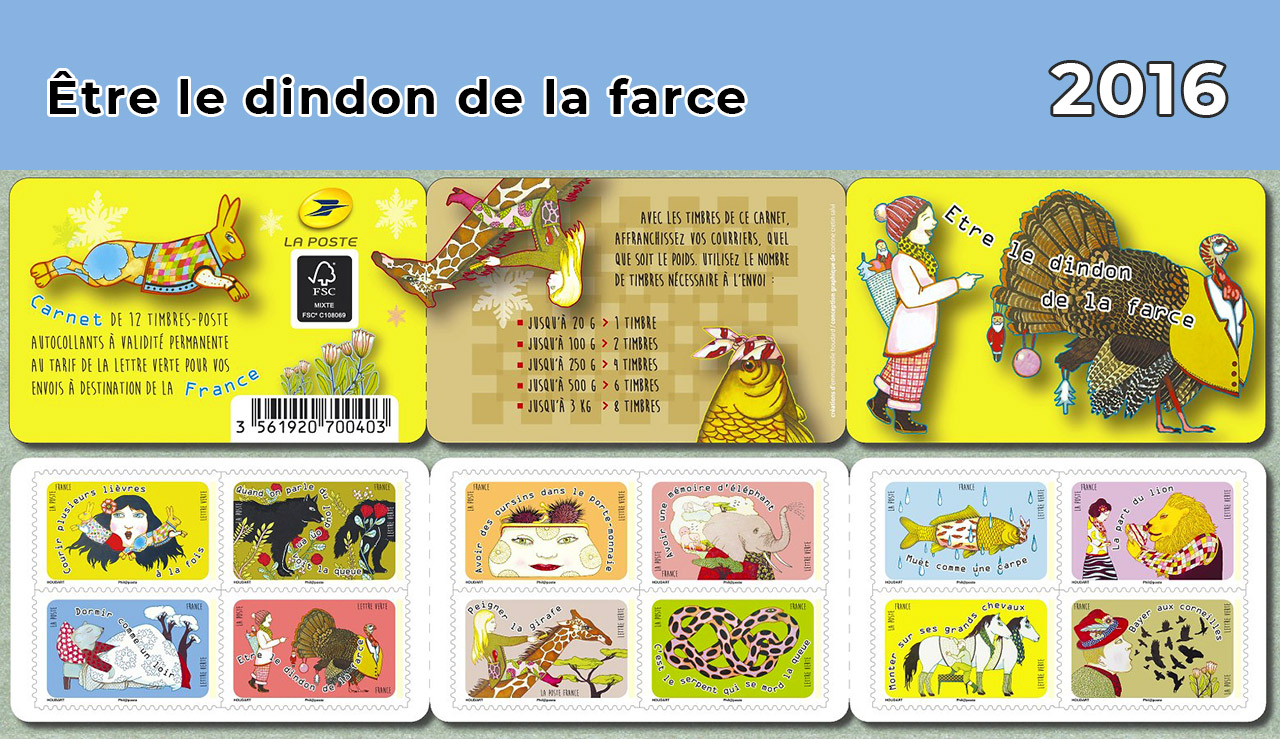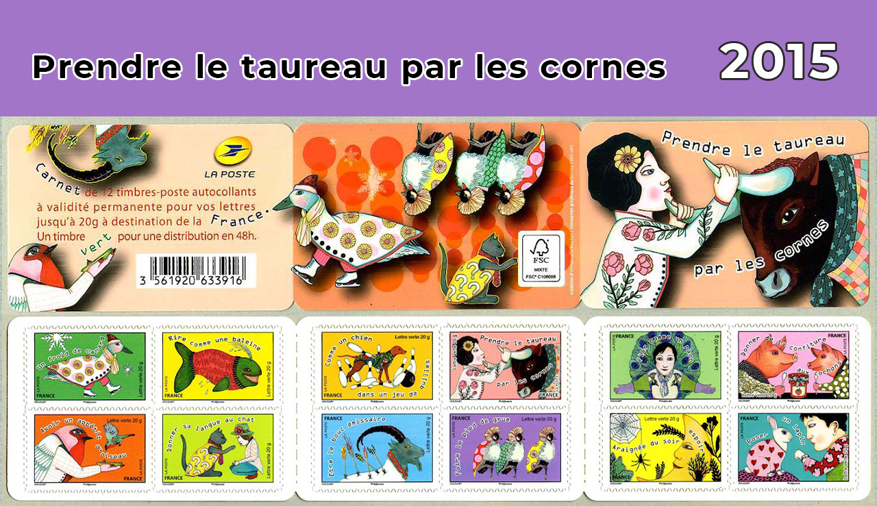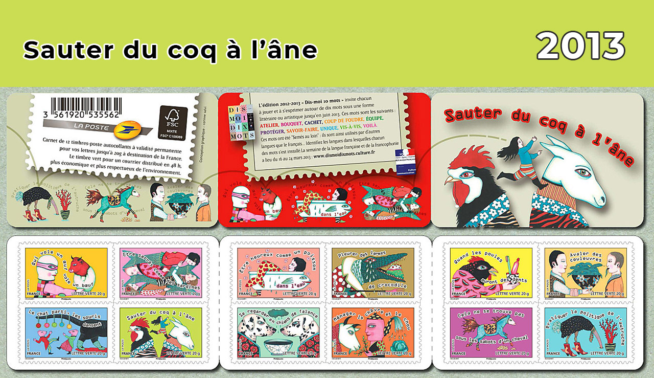 Pour La Poste, la Suissesse Emmanuelle Houdart a illustré des expressions idiomatiques liées au monde animalier à travers la création de plusieurs carnets de timbres : Sauter du coq à l’âne (2013), Prendre le taureau par les cornes (2015) et Être le dindon de la farce (2016). Elle a également conçu en 2014 un carnet sur le thème de l’odorat dans la série Les sens.