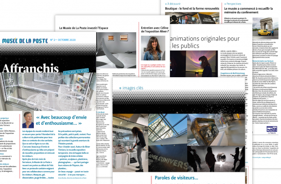 Enfin, le dernier numéro du magazine du Musée, Affranchis, largement consacré à l’exposition Rêver l’Univers : présentation de l’exposition, interview de sa commissaire Céline Neveux, animations, et témoignages de visiteurs. Il y est également question d’un projet : celui, engagé par la conservation du Musée, de recueillir la mémoire (postale) du confinement… ou plutôt, désormais, des confinements.