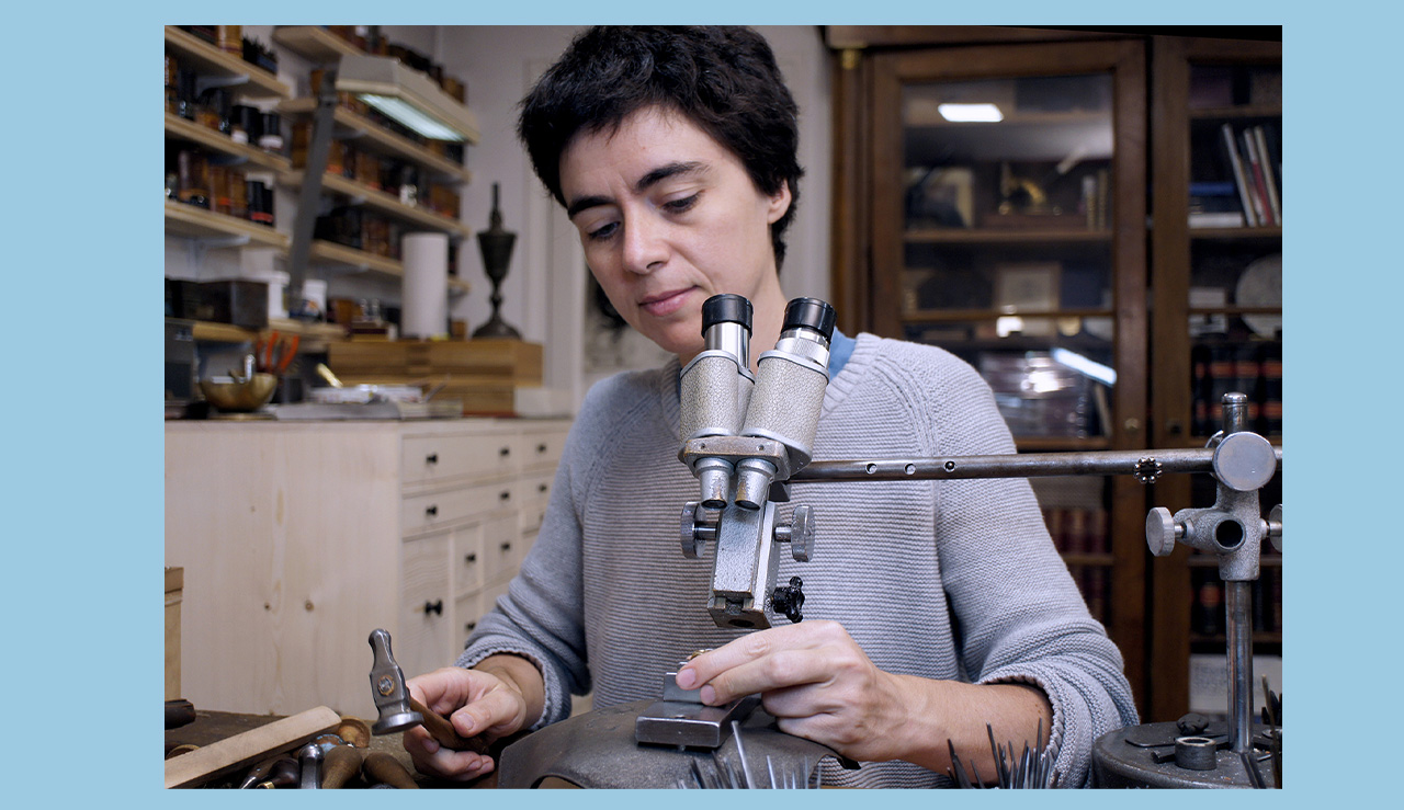 En 2015, Sarah décide de se recentrer sur la pratique de la gravure manuelle et elle s’initie à la gravure héraldique en cachet auprès de Gérard Desquand, son ancien professeur de l’école Estienne. Cet art consiste à graver une armoirie sur des objets de très petit format, comme le plateau d’une chevalière. Pendant trois ans, le maître d’art lui transmet son savoir-faire et son expérience avant de lui confier les rênes de son atelier.