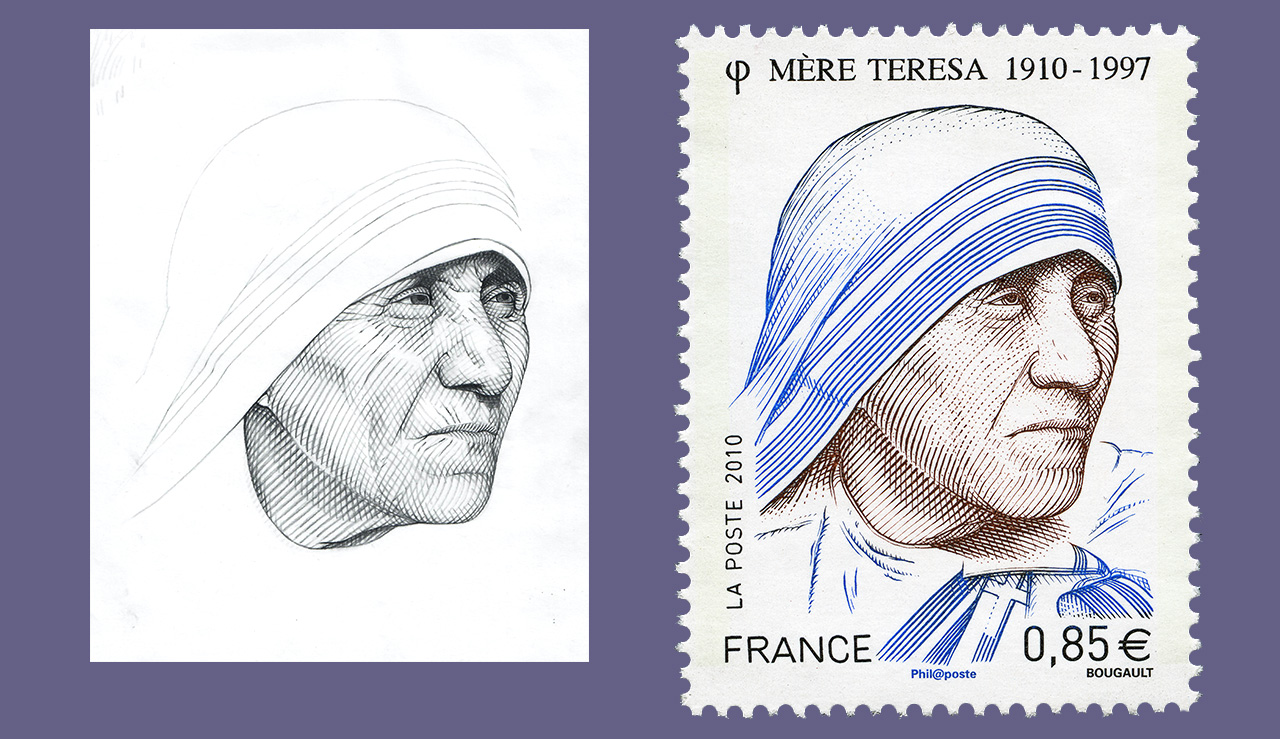 La même année, elle commence sa collaboration avec La Poste, pour laquelle elle dessine et grave un premier timbre-poste à l’effigie de Mère Teresa.