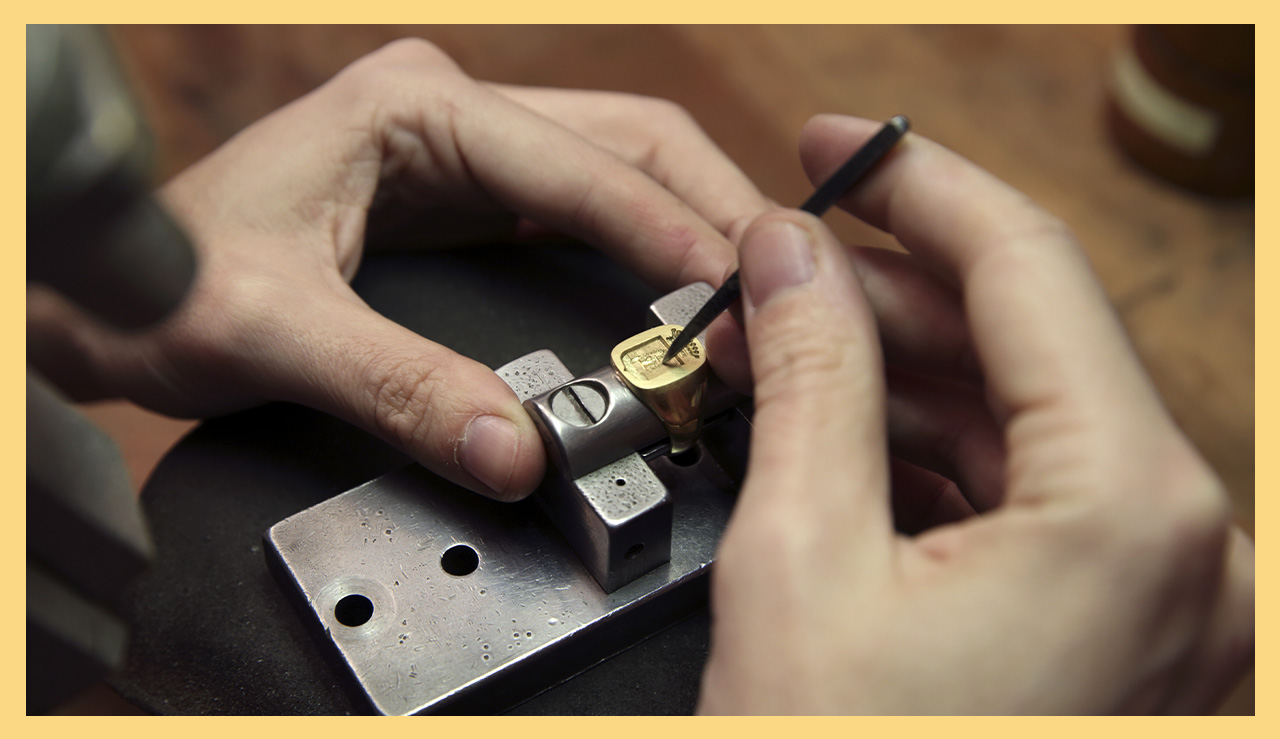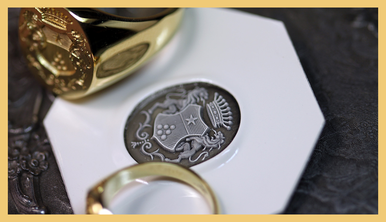 D’une manière générale le métier de graveur héraldiste consiste à graver des armoiries sur tout type de supports (chevalières, cachets, couverts, récipients, boîtes à bijoux, montres…). Chaque support exige l’utilisation d’outils et de gestes de gravure spécifiques. Ces variations techniques demandent une grande dextérité puisqu’elles réunissent en partie les arts de la sculpture, de la gravure et de la ciselure.
